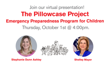The Pillowcase Project is a free virtual emergency preparedness education class that teaches children (ages 7-12) about emergency preparedness. The project emerged during Hurricane Katrina, when many people who evacuated carried important items to shelters in their pillowcases. Aimed at educating children on specific disasters and empowering them to feel emotionally and physically prepared to deal with emergencies; reinforces personal preparedness by engaging children in a discussion about emergencies, teaching coping skills, and practicing preparedness at school and home.