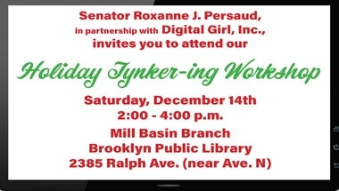 Senator Roxanne J. Persaud, in partnership with Digital Girl, Inc., invites you to attend our Holiday Tynker-ing Workshop