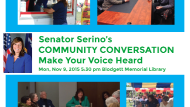 “It is especially important to me that people know they have a representative who will fight to ensure that the needs of our communities are being met,” said Senator Sue Serino. “I govern by listening and the ‘Community Conversation’ is an opportunity for our neighbors to come together, make their voices heard, ask questions and fill me in on the issues unique to their area.”