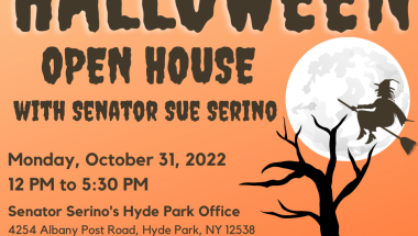 Who: NYS Senator Sue Serino What: Trick or Treat at Hyde Park Office When: Monday, October 31, 2022; 12:00 – 5:30pm Where: Senator Serino’s Hyde Park Office (4254 Albany Post Road, Hyde Park, NY 12538) Senator Sue Serino is inviting community members to her Hyde Park District Office for a Halloween Open House where local children can ‘trick-or-treat’ safely and leave with Halloween treats, as well as information on important state resources.
