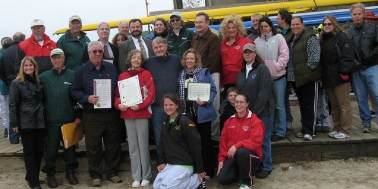 Senator Marcellino with members of the Sagamore Rowing Association at their 25th Anniversary Celebration at the Condrie Hall Boat House.