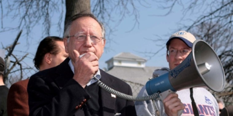 On Saturday morning March 7, New York State Senator Frank Padavan (Queens) joined with community leaders, members of the Bay Terrace Community Alliance Inc, Friends of Fort Totten Park and concerned residents to protest the removal of the security guard service located at the gate of Fort Totten. Padavan and community members stressed their concern that the removal of the security guard service at the front gate will increase the potential for vandalism and burglary of the historic buildings in the Fort Totten complex and surrounding neighborhoods. Senator Frank Padavan (Queens) speaks out against the removal of the security gate service at Fort Totten during a community rally.