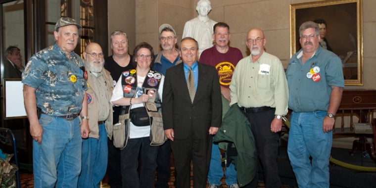 Senator Maziarz stands with local firefighters at the Gates Chili