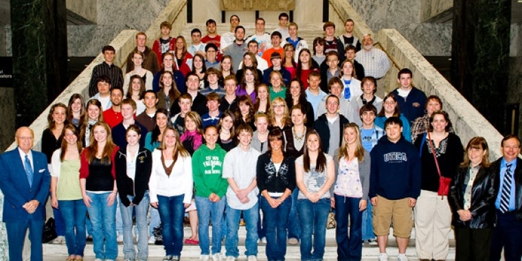 Pictured in front, far left, is State Senator Hugh T. Farley (R, C, I - Schenectady) greeting the Duanesburg Central School senior class in Albany on April 21st. The chaperones included District Superintendent Christine Crowley, Social Studies teacher David Christopher, Social Studies teacher Kathy Sprenger, Business teacher Tina Prewitt, and Special Education teacher Mark Ferreira. Students on the trip included: Chris Hymy, Hillary Hayen, RJ Barry, Kara Durant, Dan Rossi, Keri McDaniel, Nick Ferri, Lauren McGarry, Gaby Cestra, Teddy Savoy, Chris Lyons, Carlos Banks, Ashlie Hudson, John Mayo, Marissa Vrooman, Justin Perog, Megan Palmer, Marissa Quinonez, Richie Kennedy, Lacy James, Ben McKeeby, Kendra Smith, Emily DeGuile, Katie Yawarski, Jessica Clyma, Tyler Williams, Sara Cooper, Sarah Terry, Mo Kuhl, Danielle Fields, Greg Humphrey, Erica Remling, Gabby Grant, Beth Smith, Eric Fiacco, Jared Wengeneck, Katie Littlefield, Colby Hocmouth, Tasha Bradt, Brittany Ash, Adam DeHont, Andrew Platonov, Lydia Eisenbradt, Tyler Minerly, Adam Marmuscak, Keith Bubb, Noelle Hennel, Anthony Galeo, Steve Karandy, Alyson Sanders, Drea Prewitt, Dan Farnum, Chris Gaidusck, Kyle Boyd, Colleen Holroyd, Ben Lynch, Zach Edwards, Elizabeth Mills, Tiffany Santulli, John David Iseman, Brittney Radz, Chris Moore, Alex Vanderpoel, Jenna Kulikoff, Abby Giardenelli, Melissa Kuhl, Anny Miner, Matt Pellerin, Teylor Adams, Colin Lomax.