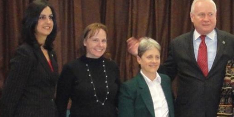 Senator Marty Golden, along with NIA officials including Mary Ann Cino, Rosa Casella and Michael Bove, salutes Joseph Iervasi, the founder of the NIA, for all he has done throughout the years for the neighborhood.