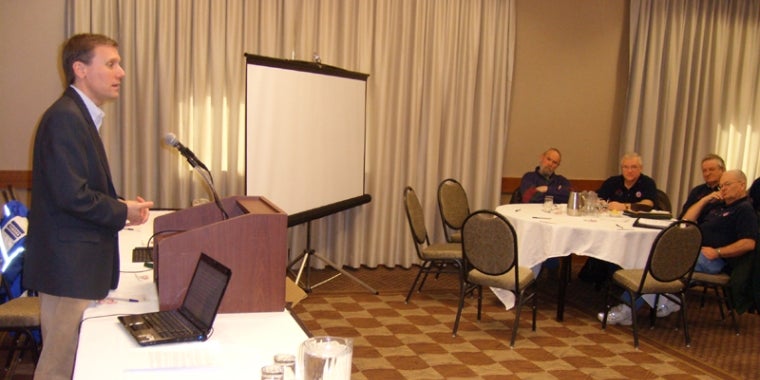Senator Valesky discusses the Budget with the New York State Snowmobile Association.
