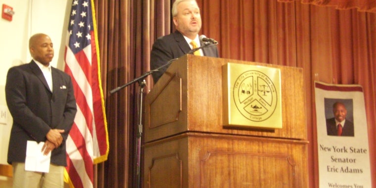 Rory Whelan of Time Warner Cable addresses the diverse community at the Census Rally organized by Senator Adams. TWC and Team Adams are raising awareness for the 2010 Census.