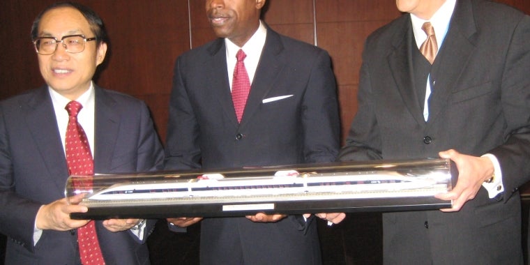 Senate President Malcolm A. Smith was joined by Minister of Railways for China, Mr. Liu Zhijun and John Wang of the Asian American Business Development Center at the 7th World Congress on High Speed Rail in China.