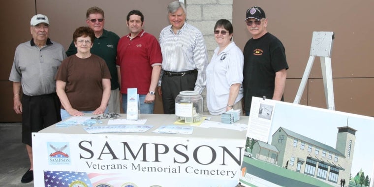 Waterloo - Senator Mike Nozzolio recently stopped in Waterloo to show his support for the Sampson Veterans Memorial Cemetery at the former Sampson Naval and Air Force base. Members of the Veteran's cemetery committee sponsored a chicken barbecue to raise awareness and support for the project.