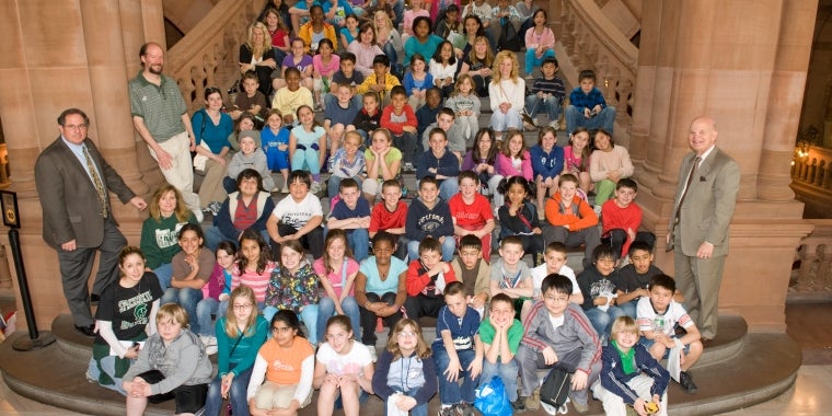 Senator Saland and Assemblyman Miller met on the Million Dollar Staircase in the State Capital with a group of 4th graders from Hagan Elementary School in Poughkeepsie
