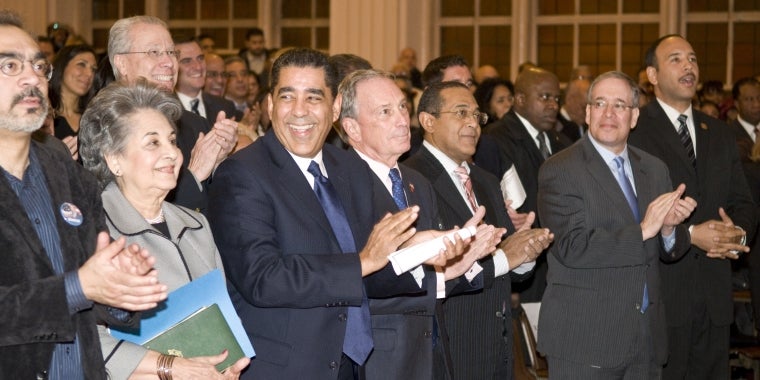 Senator Adriano Espaillat with New York City Mayor Mike Bloomberg, Manhattan Borough President Scott Stringer, and Bronx Borough President Ruben Diaz Jr.