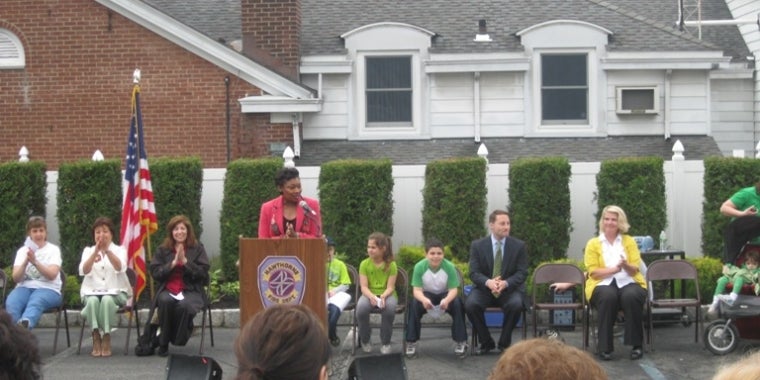 Senator Stewart-Cousins joined students, parents and faculty of the Hawthorne Elementary School at the 4th Annual “Walk the Green Walk” this week. The yearly event raises awareness about the importance of protecting the environment. The “Green Walk” began at the elementary school with a parade across Chelsea Street to the Hawthorne Fire Department, and culminated with a ceremony where Senator Stewart-Cousins and other dignitaries addressed the crowd. In her remarks, the Senator summed up the importance of being environmentally conscious with the following poem: “Remember the Earth Carries You Care for her Lovingly Every day.”
