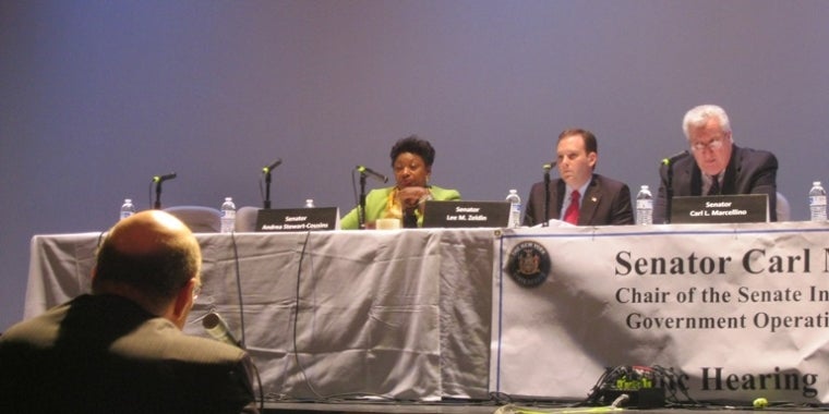 Senator Stewart-Cousins took part in a hearing of the Investigations and Government Operations Committee in Long Island regarding the "Finance, Policies and Practices of the MTA." Testifying at the hearing was Jay Walder, Chairman and CEO of the MTA; Helena Williams, President of the Long Island Railroad; Kenneth B. Bleiwas, Director of Bureau of Agency Analysis, Office of the Comptroller; John Samuelson, President of the Transport Workers Union Local 100; and Ira Greenberg, Chairman of the Executive Committee Permanent Citizens Advisory Committee to the MTA. The hearing examined the MTA's costs and revenue streams, and explored ways to maintain service without drastically increasing fares. To see a picture of Senator Stewart-Cousins at the hearing, click here.