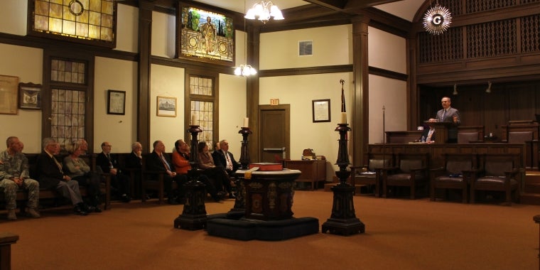 Senator Maziarz speaks to Medina Masons