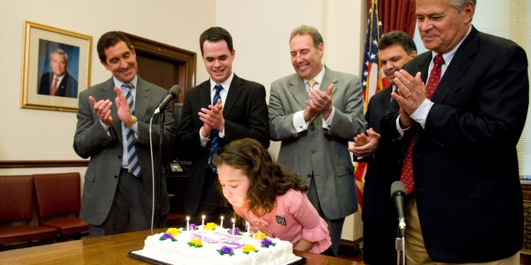 On Thursday, April 13th, in honor of National Donate Life Month, the New York State Senate was joined by 11-year-old heart transplant survivor Lauren Shields. Senator Robach was proud to support life saving legislation passed by the Senate today. Bill S.3885 would increase the number of eligible and willing organ donors by requiring driver's license applicants to specifically indicate their donation decision. Also, Senator Robach took part in a special birthday celebration for Lauren along with his Senate colleagues.