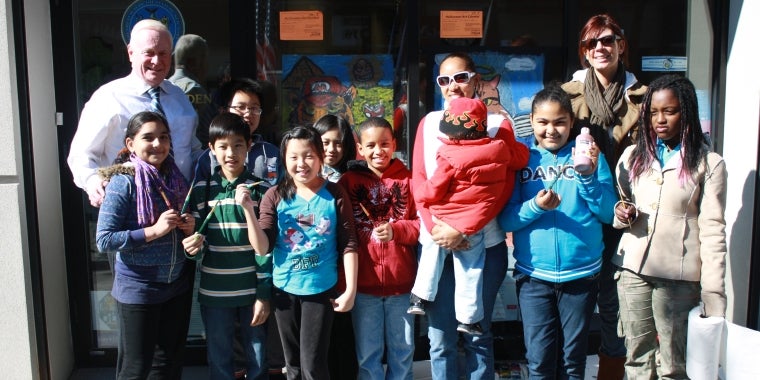 Senator Golden greeted the students that painted his office window in conjunction with the Halloween Art Contest on 5th Avenue.