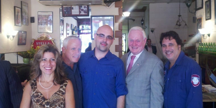 Senator Golden presents the new restaurant St. Germain with a certificate on the occassion of their grand opening.