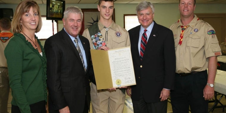 Waterloo - Senator Mike Nozzolio recently presented LaVerne Sessler III with a special New York State Resolution commemorating his achievement in earning the distinguished rank of Eagle Scout, the highest and most prestigious honor in Scouting. The formal Resolution was adopted in the New York State Senate on March 29, 2011.
