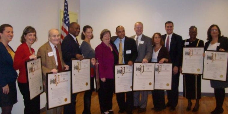 Senator Gianaris presented awards to Rachel Gordon and Paul Januszewski for all their work to improve western Queens parks and green spaces at Assemblymember Nolan's community awards event at Sunnyside Community Services.