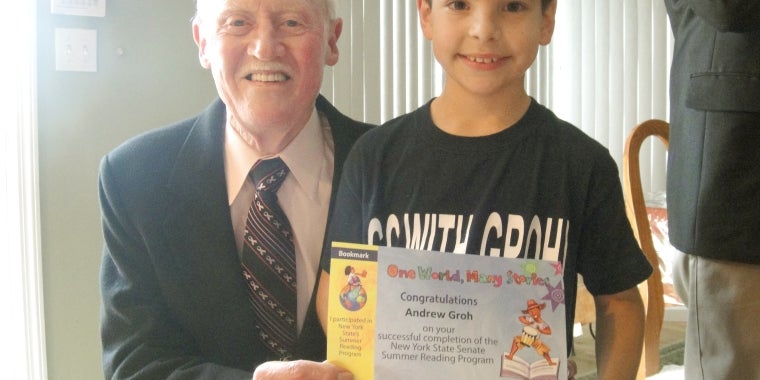 Senator Johnson congratulated Andrew Groh, a 4th grader at Marion G. Vedder Elementary School in North Babylon, upon his completion of the 2011 New York State Senate Summer Reading Program.