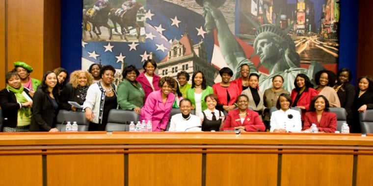 Senator Montgomery discusses the future of the National Pan Hellenic Council with legislators and BGLOs during the 2011 Conference of the NYS Black and Puerto Rican Legislators, Inc.