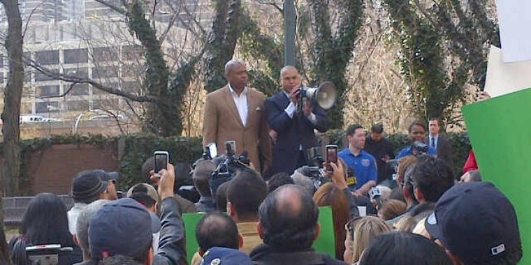 Senator Adams joins with the Northern Manhattan Restaurant and Nightclub Association to protest the NYPD against padlocking
