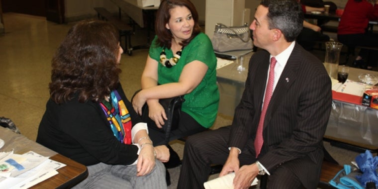 State Senator Jack Martins discussed college choices with parents at the annual Sewanhaka Central High Council of PTSA's holiday party this past Friday. Sewanhaka delegate Belinda Amell and Past SCC Council President Jill Bamberger sat with with Senator Martins where they discussed college financial aid issues, grants and college educational programs. "Listening to parents who are on the front lines of going through the college maze of financial aid, choices and programs gives me great perspective as State Senator. We are constantly looking at ways in the Senate to help parents, our young people and non-traditional students who are working harder than ever to pay the tuition and get the program choices in colleges. Hearing their personal experiences give me a unique insight on this ongoing issue," said Senator Martins.