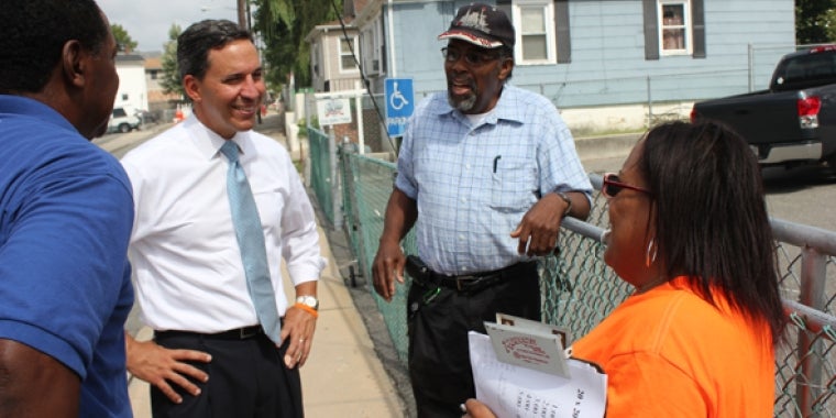 State Senator Jack Martins was introduced to Jamaica Square homeowners by Civic President Claudine Hall during the annual JSIL community day. The Jamaica Square Improvement League has a long rich history of community outreach and programming for families. The credo of the civic organization is helping their fellow neighbors and empowering the greater community. Senator Martins is pictured talking to homeowners with Hall and South Floral Park Trustee Elton McCabe during a meet and greet recently. "I want to thank Claudine Hall and the Jamaica Square Improvement for their hard work in improving quality of life for Elmont's neighborhood," said Senator Martins adding, "they make a difference."
