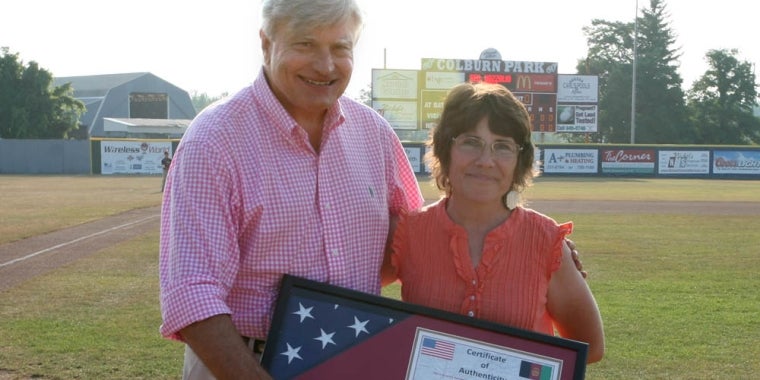 Senator Nozzolio being presented with an American flag that was flown over Afghanistan