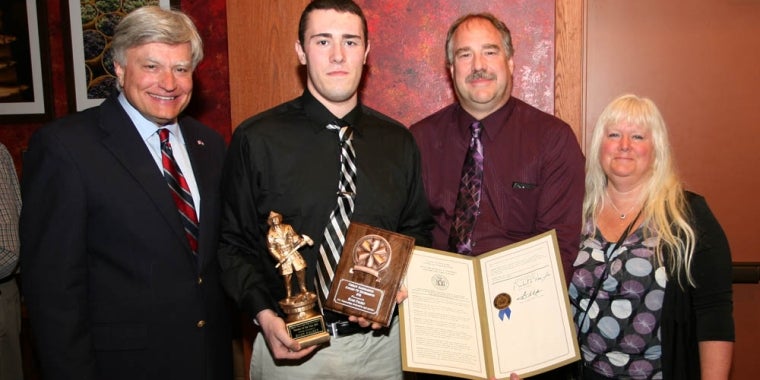 Pictured left to right are: Senator Mike Nozzolio; Ryan Falkey and Ryan's parents, Brad and Jacqueline Falkey.
