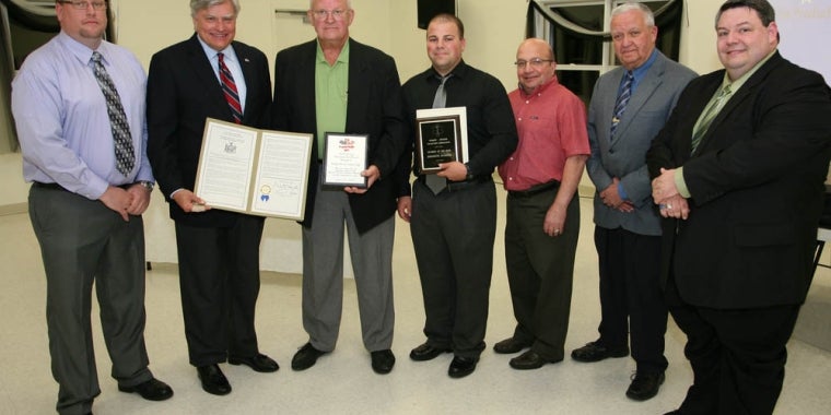 Pictured left to right are: Chief Todd Blanchard; Senator Mike Nozzolio; Ralph Miller; Brandon Howard; Mayor Peter Blandino; Supervisor Dick Colacino; and President Shawn Flanagan.