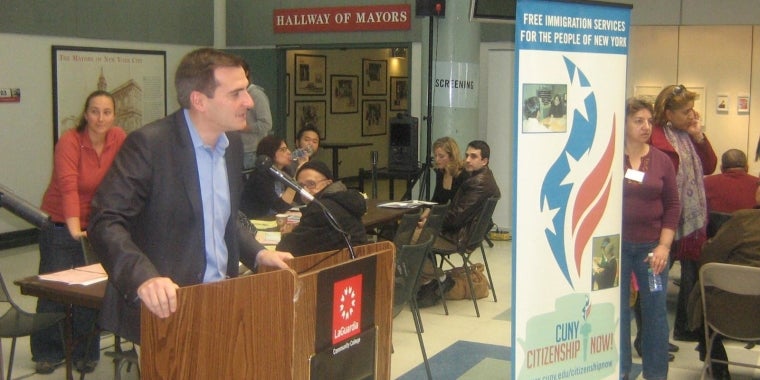 Senator Gianaris speaking at the CUNY Citizenship Now! event he co-hosted with Assemblymember Nolan and Councilmember Van Bramer.