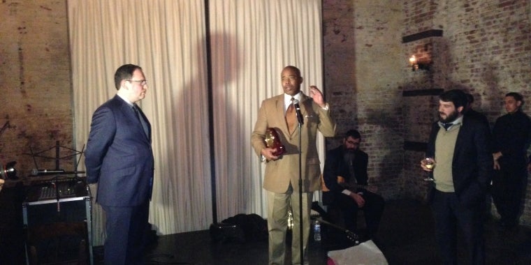 NYS Senator Eric Adams receives an award from Mikimi
