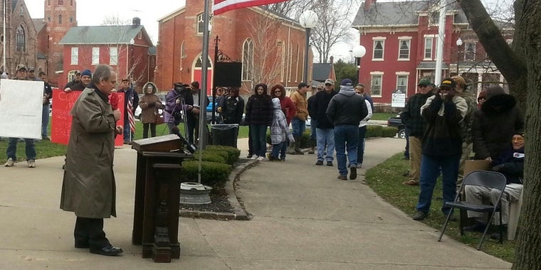 Senator Maziarz speaks at pro-Second Amendment rally at Courthouse Square in Albion