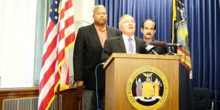 State Senator John A. DeFrancisco helped to honor law enforcement officers who lost their lives in the line of duty, during a ceremony held at the New York State Fairgrounds on August 23, 2013. Senator DeFrancisco is pictured with various elected officials and law enforcement officers from around New York State.