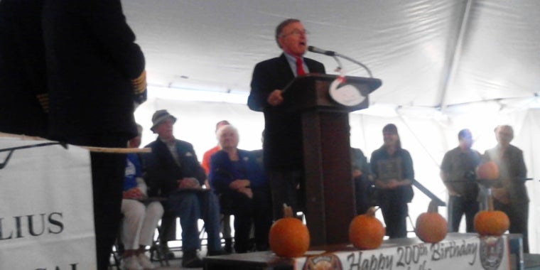 State Senator John A. DeFrancisco is pictured at the 200th anniversary celebration for the Manlius Fire Department, held on Saturday, October 5, 2013. Senator DeFrancisco presented a Citation that honored the fire department for its outstanding service.