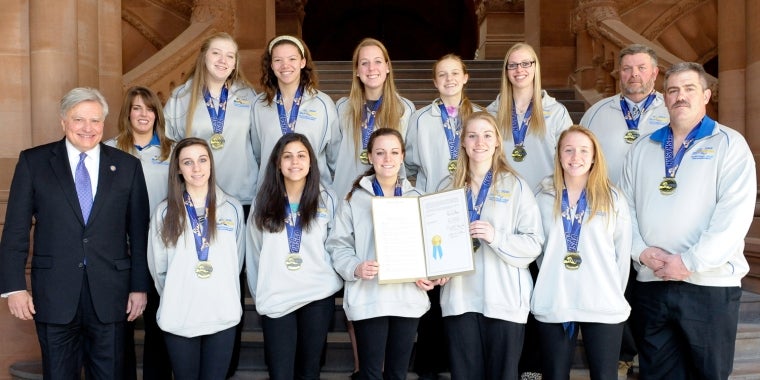 Pictured are: Senator Mike Nozzolio with Vic Salerno, members of the Salerno family as well as numerous college and local officials.