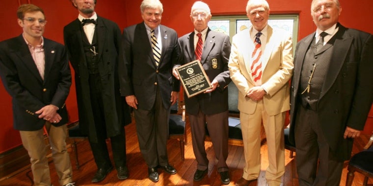 Pictured left to right are: Josh Mull, Village Trustee and Waterloo Library and Historical Society Board member; Fritz Klein as “Abraham Lincoln;" Senator Mike Nozzolio; Jim Lewis; Peter Houghton, Waterloo Library and Historical Society Board member; and Gib Young as “Theodore Roosevelt”.