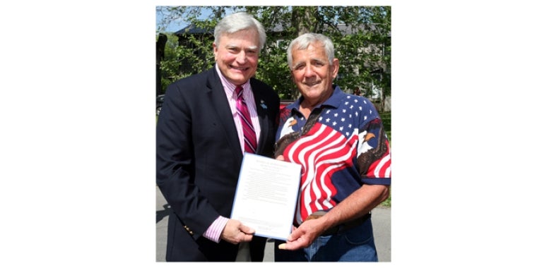 Waterloo- Senator Mike Nozzolio recently presented Jim Lewis with a special New York State Resolution that he prepared and enacted in the New York State Legislature to honor him for his designation as the recipient of the 2013 Henry C. Welles Award by the Waterloo Library and Historical Society. The Henry C. Welles Award is given annually to a resident of Waterloo, who through their community involvement and activism has made the Village a better place to live. Henry C. Welles was a Waterloo resident who organized the first ever observance of Memorial Day in May of 1866.