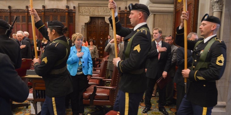 Presentation of colors by the 10th Mountain Division Color Guard announces the start of Fort Drum Day at the Capitol.