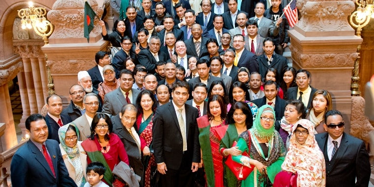 Senator Rubén Díaz and the Bangladesh Community gather on the Million Dollar Staircase, New York State Capitol, March 19, 2013