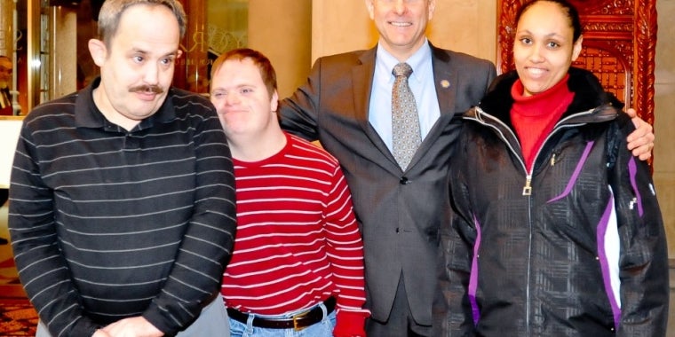 With some friends just outside the Senate chamber who let their voices be heard about the drastic cuts in OPWDD funding.