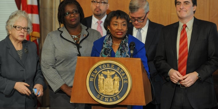 Leader Stewart-Cousins accepting the "Most Coordinated Boat" award from Governor Andrew Cuomo on Sunday, July 20th following the Adirondack Challenge, with Senator Gianaris and Senate Democratic Conference staffers. As she accepted the award, the Leader said, "We are all ambassadors for Upstate." The Adirondack Challenge highlights the summer tourism opportunities in the region, including outdoor activities such as rafting and fly fishing. The event, held in Indian Lake this year, attracted elected officials, tourism industry leaders and summer enthusiasts to Upstate New York.