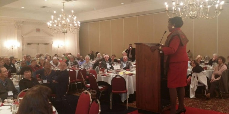 (Albany - October 6th) Senator Stewart-Cousins addressed the New York State United Teachers at their 2014 Retiree Leadership Meeting in Albany, and caught up with Westchester's (from left to right) Alana Cormican, Dolores Thompson and Florence McCue, at-large Director for NYSUT retirees. NYSUT represents 600,000 educators, health care professionals and municipal employees statewide, including 200,000 retirees.