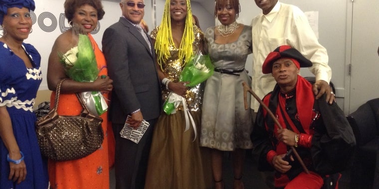 From Left To Right | Malin Falu (Host), Felipe Luciano (Co-Host), "Lucrecia", Pamela-Green Perkins, Senator Bill Perkins flanked by Cuban performing artists.