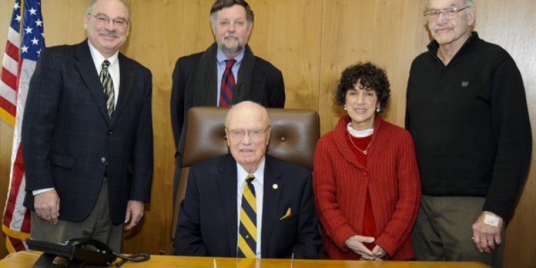 State Senator Hugh T. Farley (R, C, I – Schenectady) met with members of NAMI (Naltional Alliance for Mental Illness) on January 28th in Albany and discussed the proposed State budget as it related to mental health issues. Representatives from the Schenectady area that met with Senator Farley (seated) included (left to right) Bill DeVita, Bob Corliss, Patty, Costa and Roy Neville.