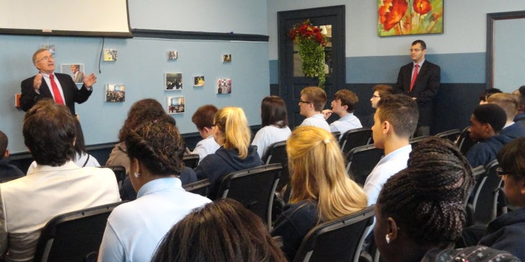 On May 22, 2014, State Senator John A. DeFrancisco spoke to a sophomore class at the Syracuse Academy of Science Charter School about state government and current legislation.