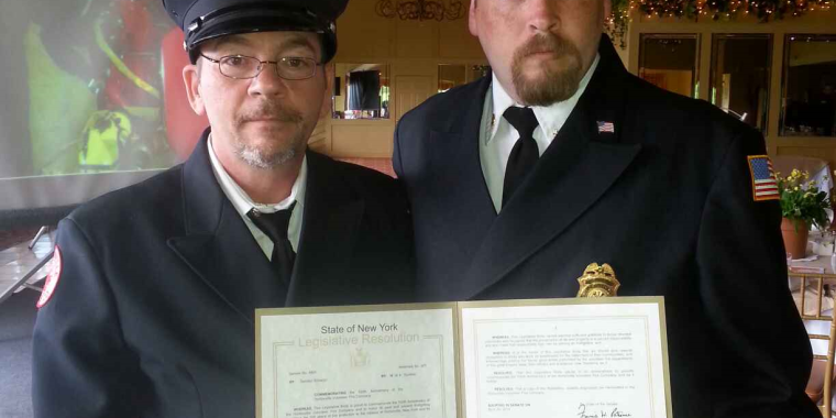 The Hortonville Volunteer Fire Company recently celebrated its 100th anniversary, and at their dinner, a New York State Senate resolution was presented to President Paul Hendershot and Chief Peter Norton in recognition of this milestone for the Fire Company.