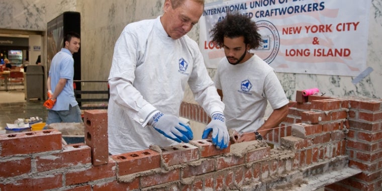Senator Bonacic At Brick-Laying Demonstration Led by Local 5/International Union of Bricklayers & Allied Craftworkers