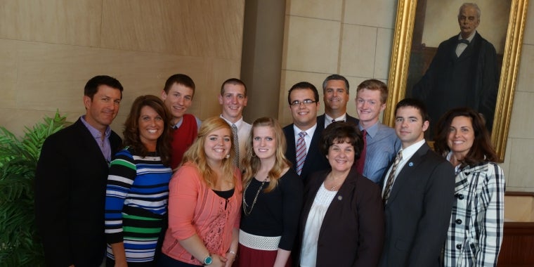 Joining Senator Marchione today (Monday, May 5, 2014) as her special guests in the NYS Senate were the following South Glens Falls High School students: Katie Washburn, Bethany Warren; Joshua Deyo; Patrick Fish; Devon Sweenor; and Nick Hutchins. Also joining Senator Marchione, and the students, were the following adult advisors: Principal Carla Biviano; Jody Sheldon; Tom Myott; Dan Albert; and Superintendent Mike Patton. Senator honored the South Glens Falls High School students for raising $583,015 for local charity as part of their record-breaking 2014 Marathon Dance.